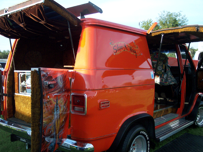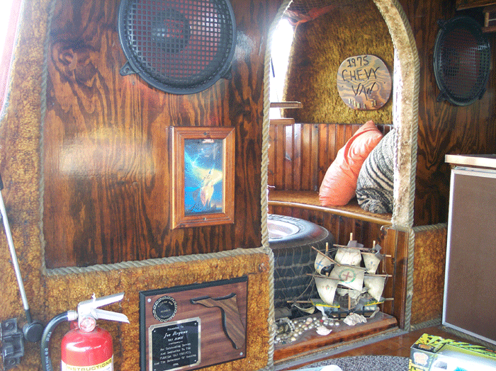 Stow Away is a 1975 short-wheel-base Chevy van owned by Joe